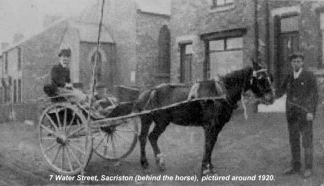 The Cross Streets consisted of ten back-to-back terraces with narrow alleyways and were the venue for a large number of Irish families in the village. These houses were demolished around 1939 and were the houses that Thomas’ elder brother Robert Bell Claughan (1827 – 1905) had once been landlord of, letting them to the pit workers in the 1860’s, while acting as Gamekeeper at Sacriston Colliery.